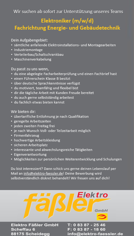 Wir suchen dich – Elektroniker (m/w/d) Energie- und Gebäudetechnik.